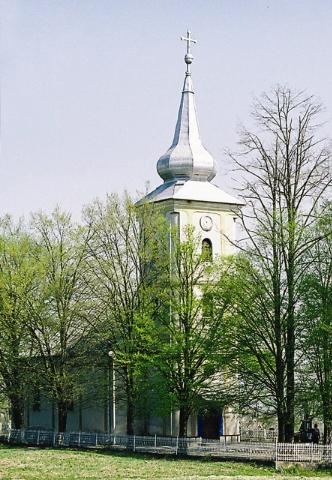 În anul construcţiei, 1828, era cea mai mare biserică din zonă. A fost ridicată în cel mai înalt punct al comunei, conform obiceiului ce consfinţea ca biserica să domine întreaga aşezare. Edificiul are un plan simplu, cu o navă rectangulară. Turnul alipit navei are secţiune pătrată, ferestre semicirculare, fiind încoronat cu un coif baroc. În 1893 turnul a ars în totalitate, datorită descărcărilor electrice. Absida este semicirculară, asemenea ferestrelor navei. Vechiul iconostas, realizat în stil baroc dar cu influenţe populare, a fost înlocuit. În timpul primului război mondial zidurile bisericii au fost ciuruite de gloanţe. Clădirea a fost restaurată în întregime în anul 1931, fiind sfinţită de episcopul de Maramureş, Dr. Alexandru Rusu. (DB).